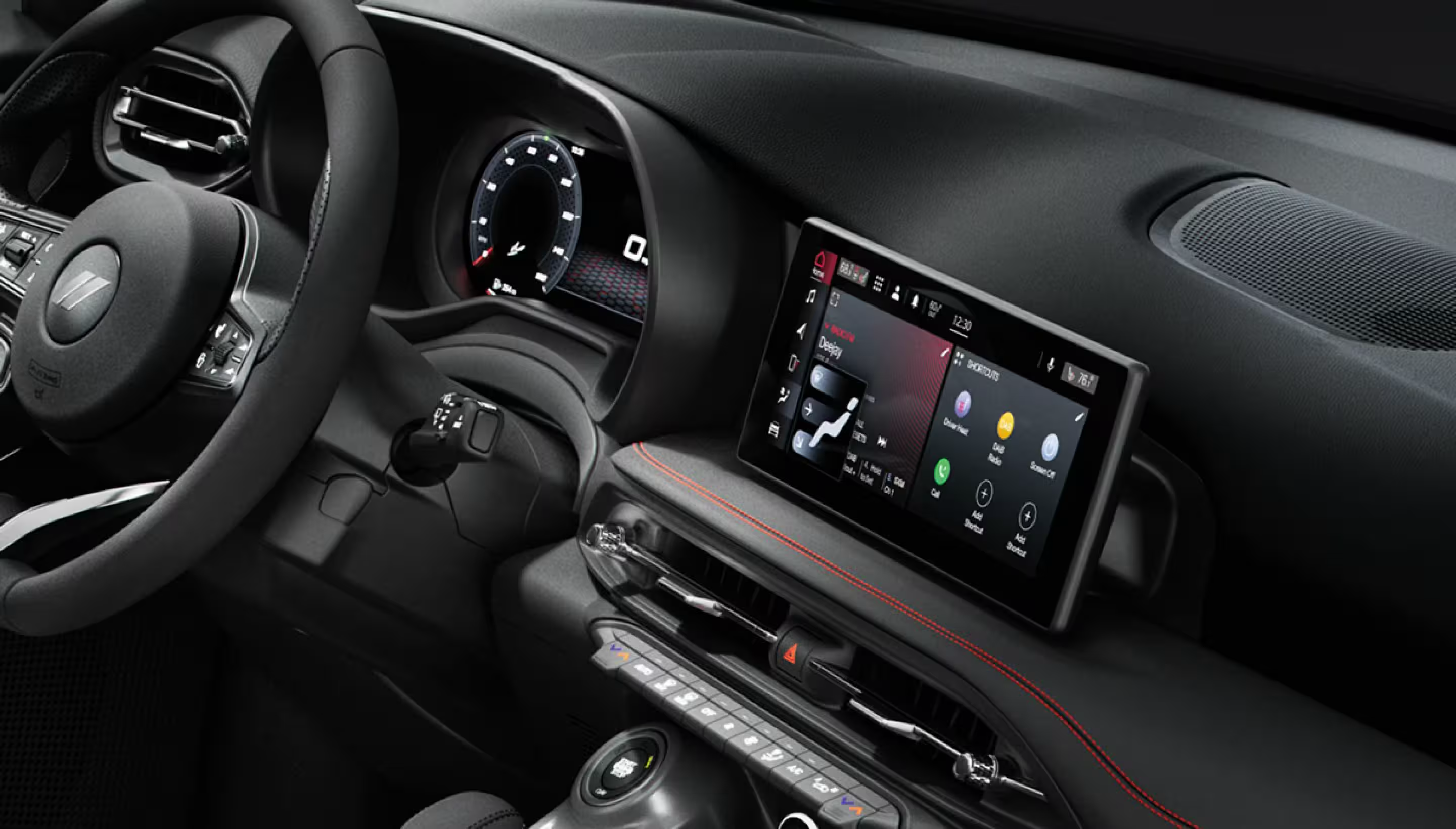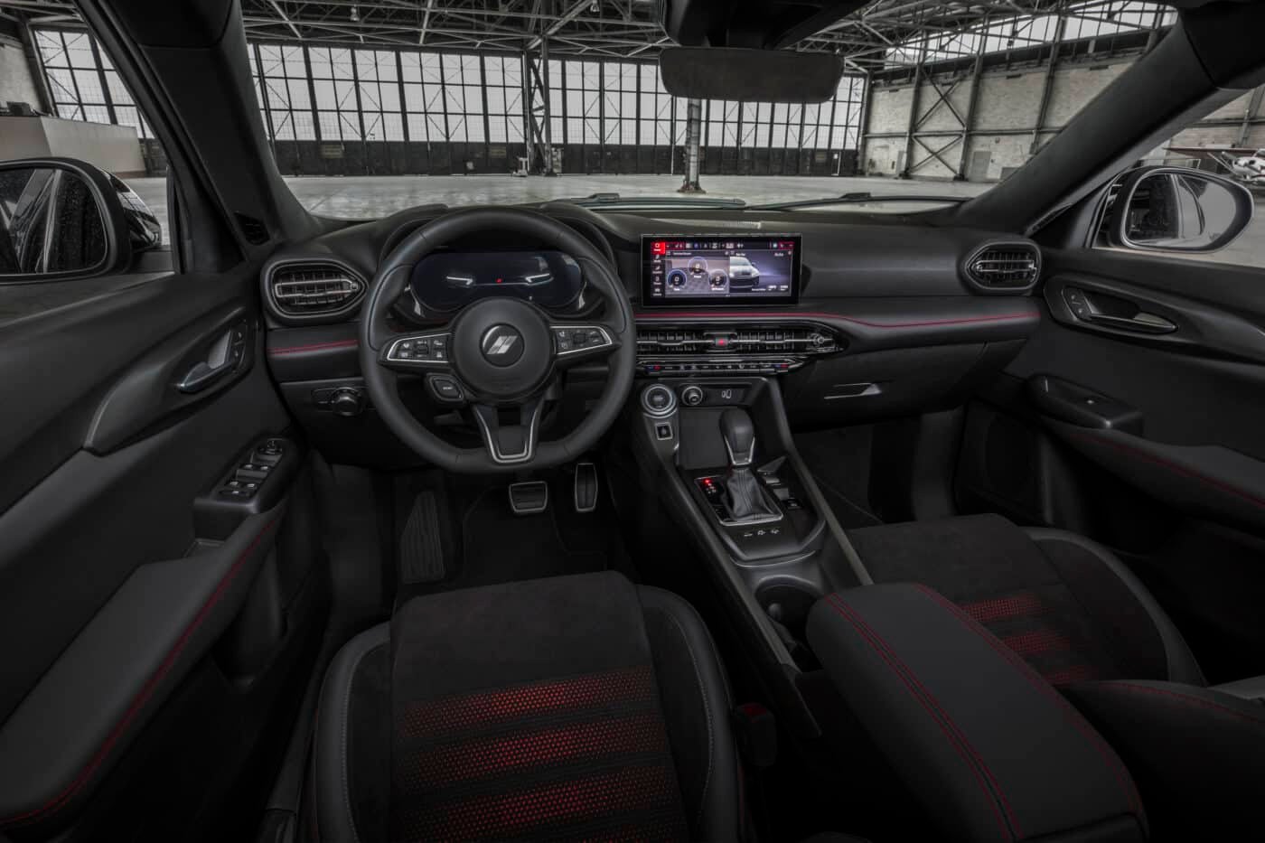 The 2025 Dodge Hornet’s cabin is crafted to put the driver at the center of the action while surrounding all passengers with comfort and innovation. A sleek blacked-out interior is accented with metallic finishes and available red contrast stitching, while available leather or Alcantara® upholstery adds premium refinement. Comfort comes standard with available heated and ventilated front seats, a heated steering wheel, and dual-zone automatic climate control to keep every ride enjoyable in any season.