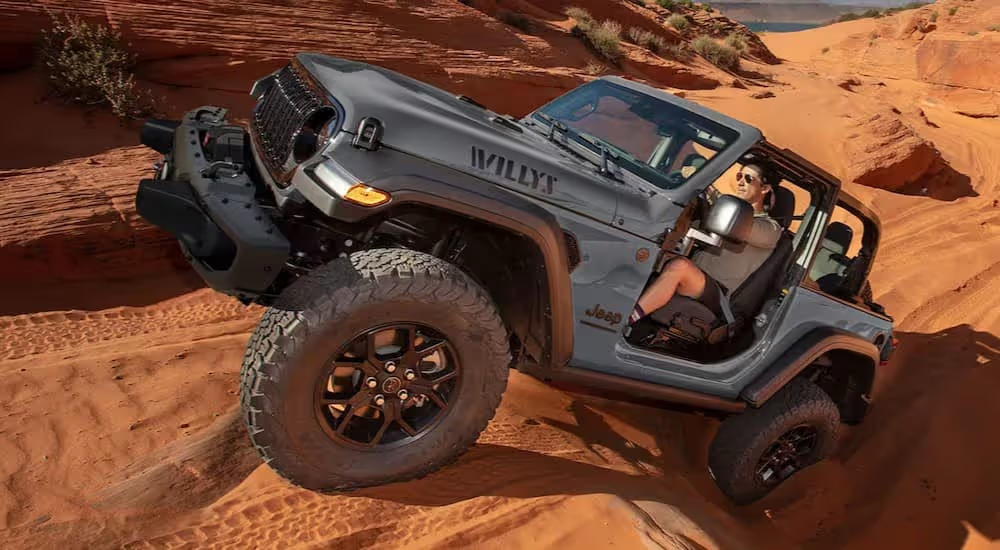 The 2025 Jeep Wrangler continues its legacy with a wide range of trims tailored to every kind of adventure. The Sport trim stays true to Wrangler heritage with its iconic 7-slot grille, round headlamps, and removable roof and doors that define the open-air Jeep experience. The Willys steps up with LED lighting, rugged blacked-out accents, 33-inch off-road tires, and heavy-duty rock rails—perfect for those who want capability and style in one package. For serious explorers, the Rubicon trims deliver unmatched off-road dominance with features like a factory-installed WARN® winch, Rock-Trac® 4x4 system, high-clearance fender flares, and up to 35-inch all-terrain tires on beadlock-capable wheels finished in black or bronze. On the refined side, the Sahara trim enhances everyday versatility with body-color fender flares, 18-inch machined-face wheels, and full LED lighting for a polished, upscale presence. And for the ultimate open-air freedom, Jeep’s class-exclusive Sky One-Touch® power top joins a variety of soft and hard top options, with both 2- and 4-door configurations available. With accessories and packages to match any lifestyle, the 2025 Wrangler is as versatile as it is legendary—built to conquer the trail and turn heads on the street.