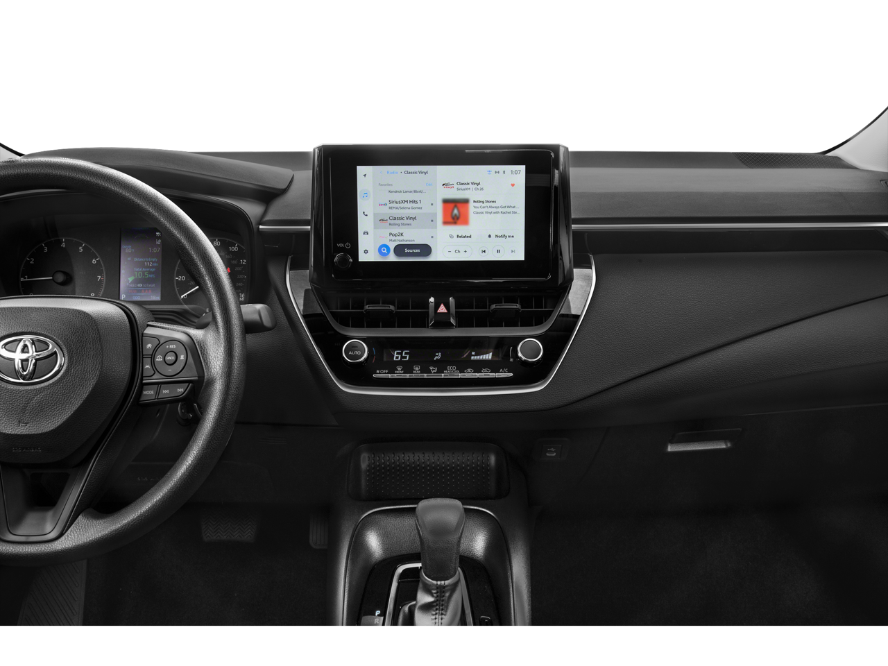 Step inside the Corolla LE and discover a cabin that seamlessly blends style and functionality. The spacious interior, complete with Fabric Seat Trim and a Front Center Armrest, offers ample room for you and your passengers to stretch out and enjoy the ride. The Split Folding Rear Seat provides versatile cargo-carrying capabilities, allowing you to adapt to your evolving needs.