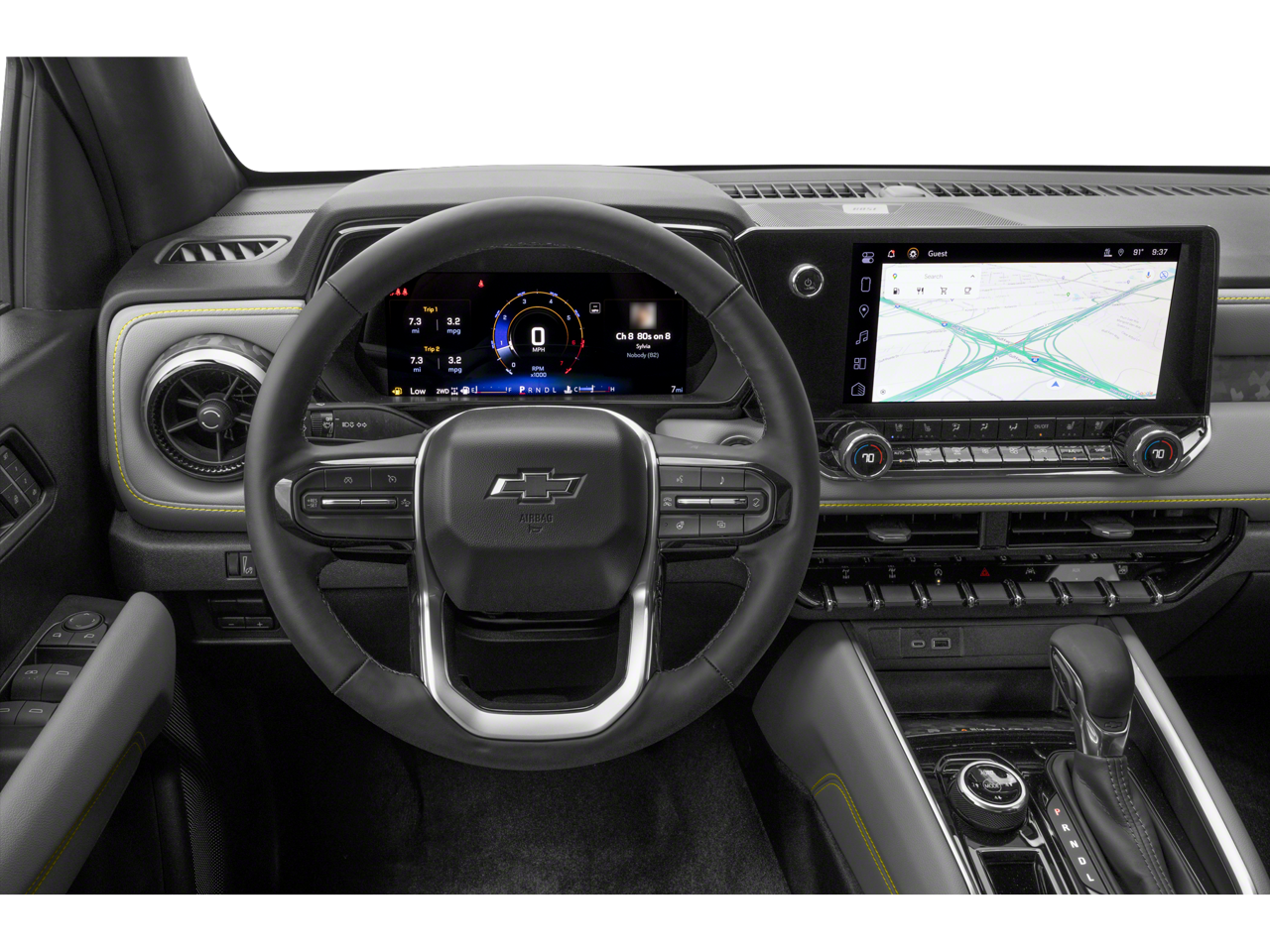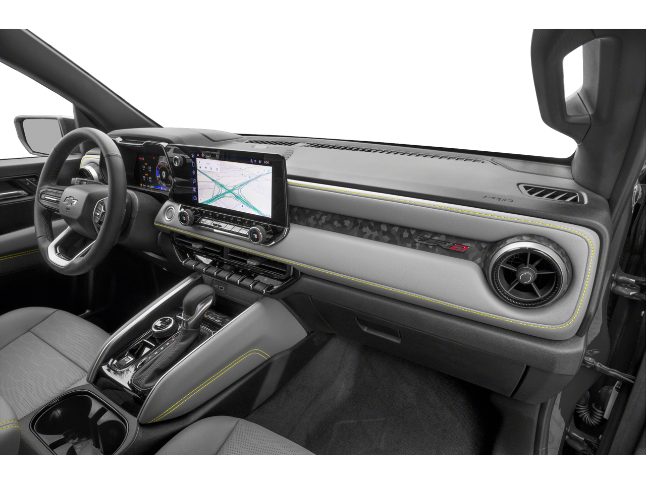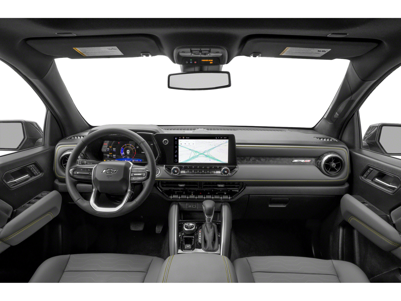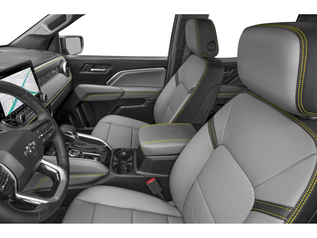 Inside, the Colorado ZR2 offers a premium cabin experience with perforated leather-appointed seating, heated and ventilated front seats, and a heated steering wheel. The 11.3 advanced color LCD display provides intuitive control over the vehicle's advanced technology features, including the navigation system, Bose audio, and Chevy Safety Assist suite.